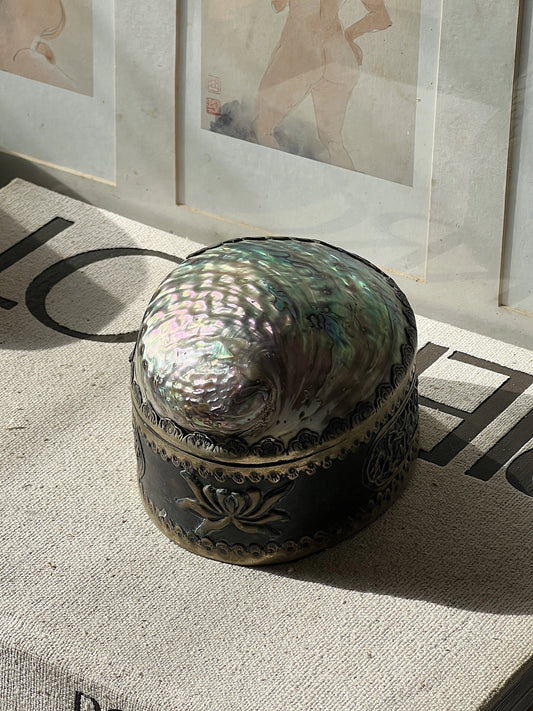 RARE Antique Abalone Shell Embellished Keepsake Holder