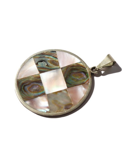 Vintage MOP Abalone Shell Checker Pendant