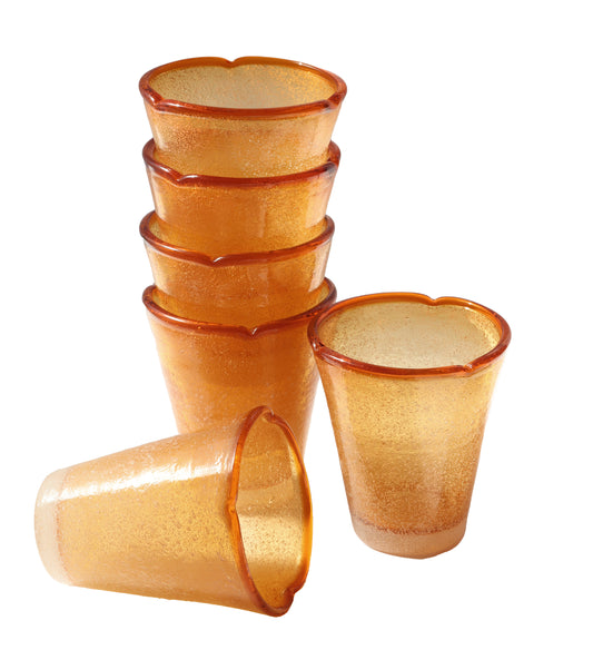 VIntage Amici Art Glass Amber Bubbles Set of 6