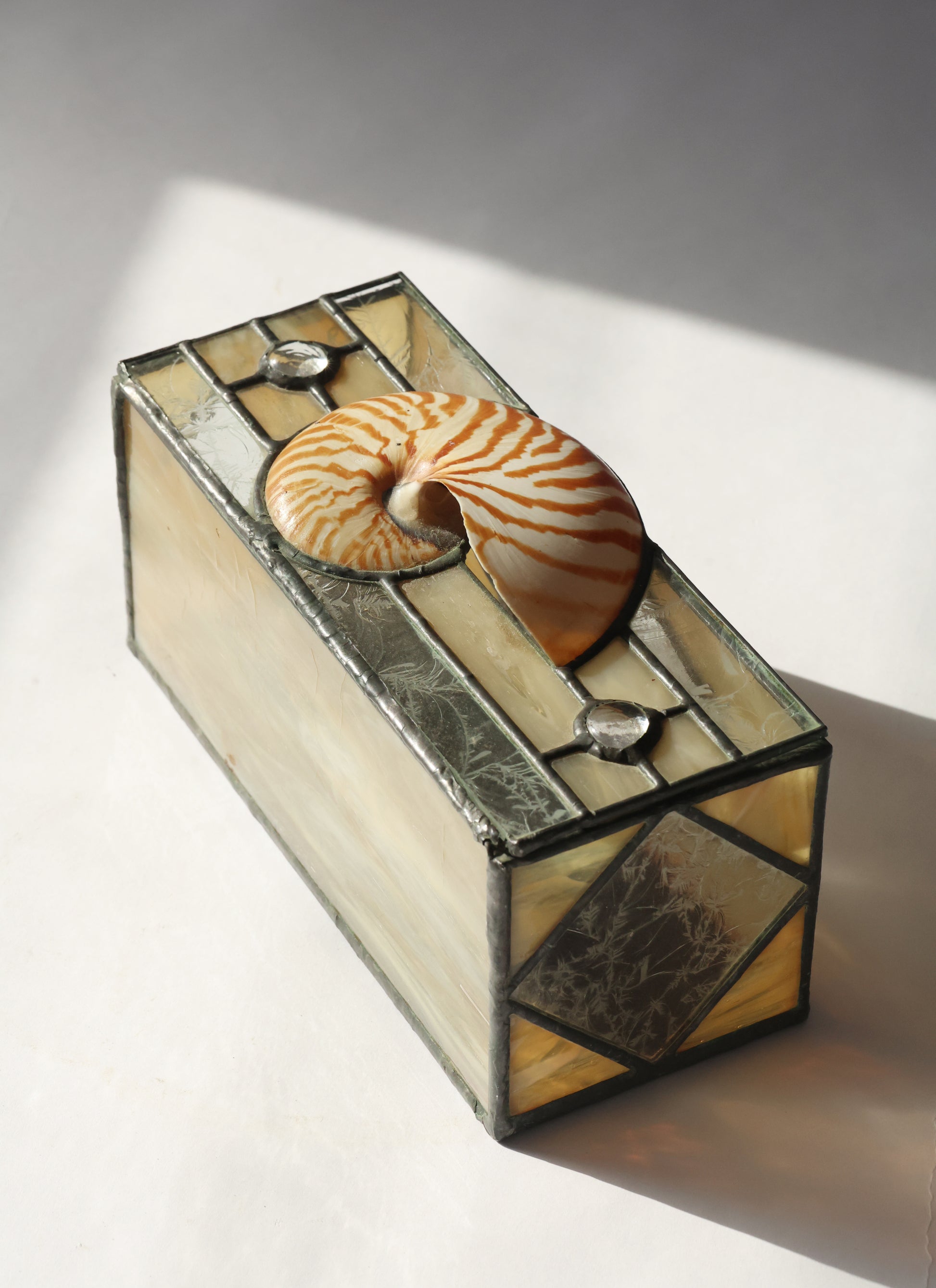 RARE 1996 Nautilus Shell Stained Glass Box