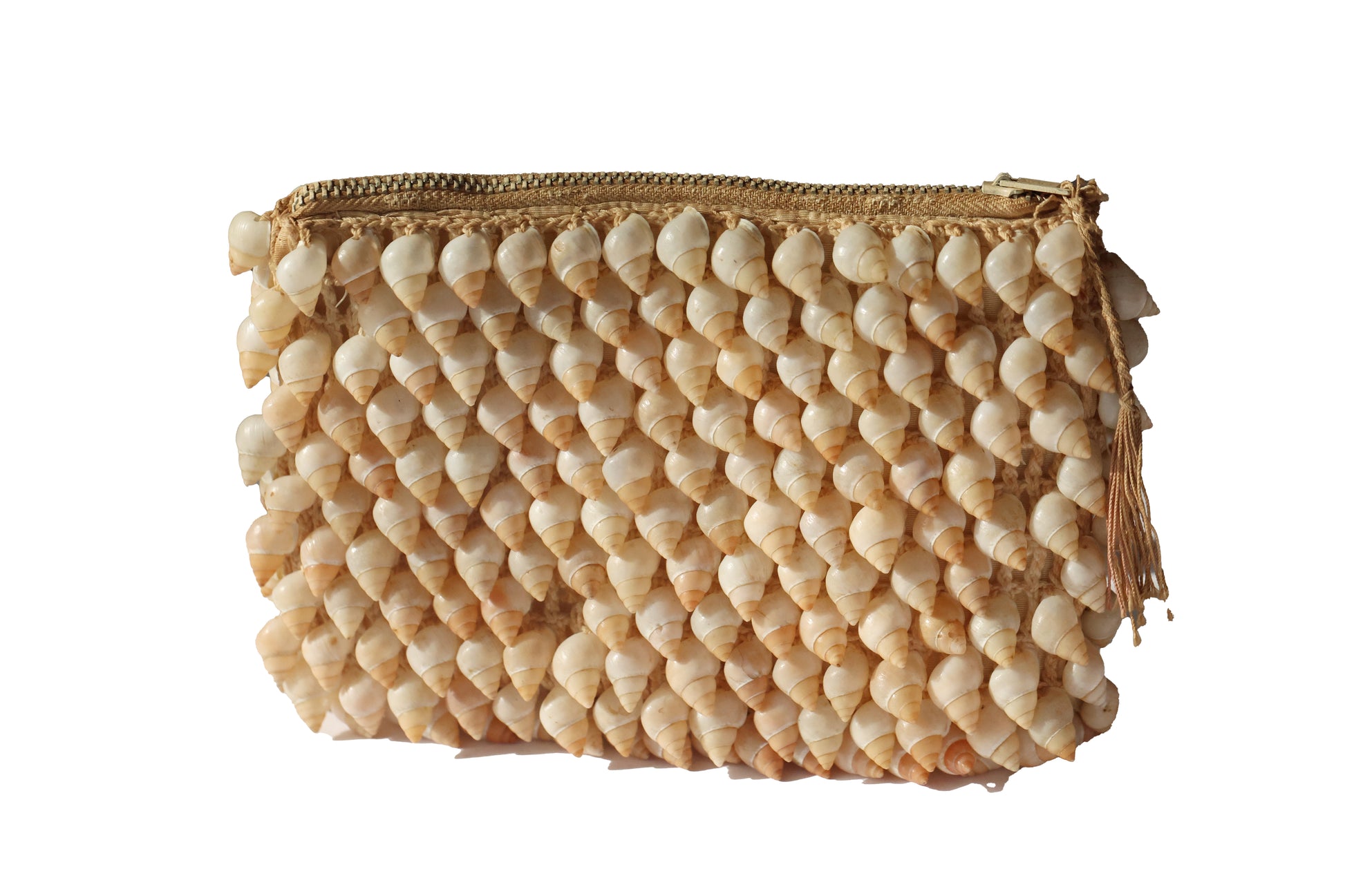 Vintage Crochet Clutch with Natural Cone Shell Appliqué